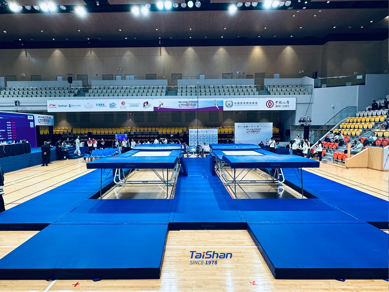In order to ensure the excellent performance of gymnasts, Taishan Sports’ professional service team went to Hong Kong in advance to prepare for the installation and debugging of the competition venues. The state-of-the-art gymnastics equipment provided by Taishan Sports will shine in the competition.