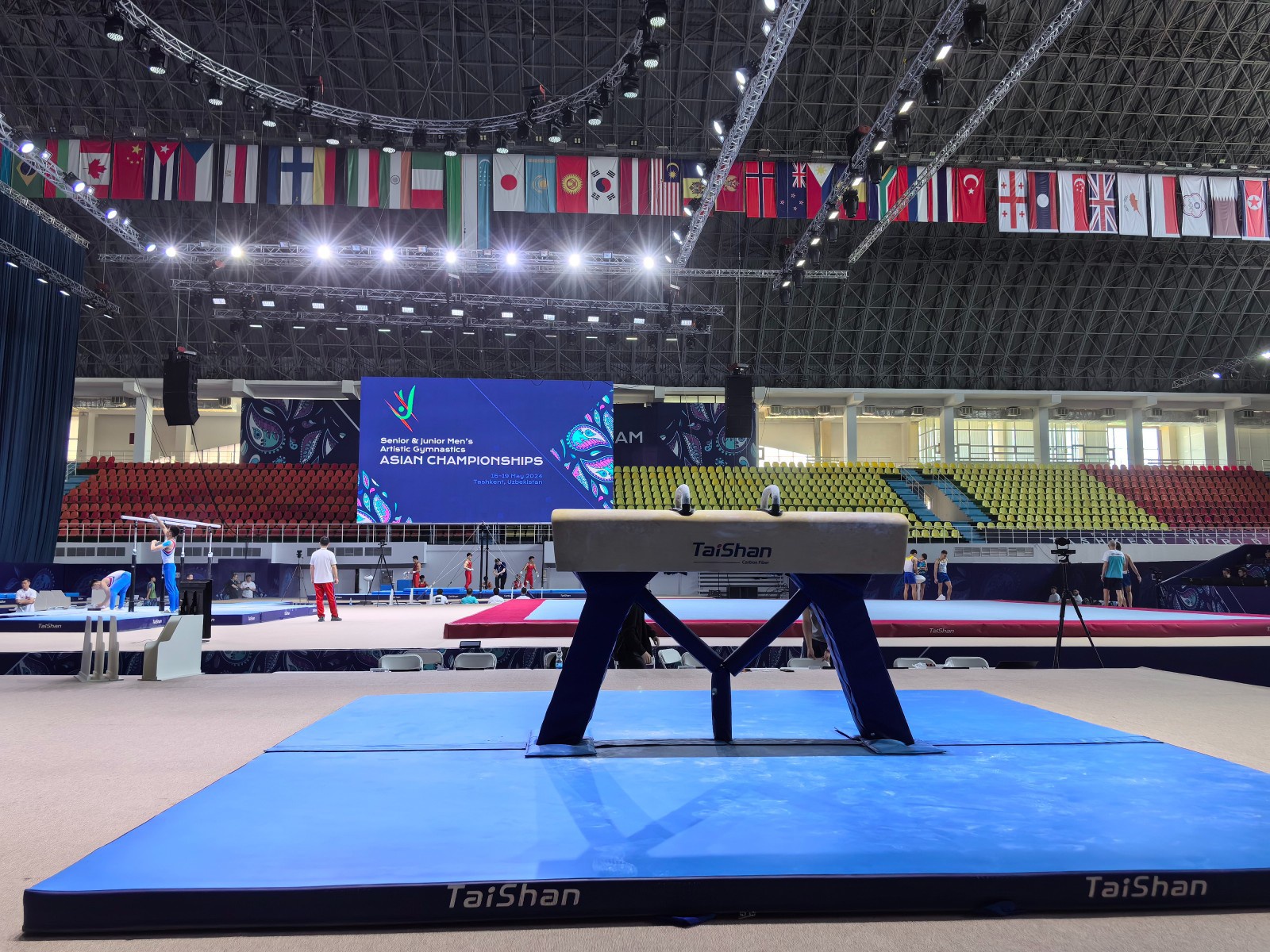 In order to ensure the excellent performance of gymnasts, Taishan Sports’ professional service team went to Tashkent on May 9th to prepare for the installation and debugging of the competition venues. The state-of-the-art gymnastics equipment provided by Taishan Sports will shine in the competition.