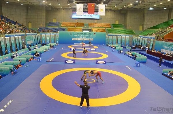 “预备,开始!”随着裁判一声号令,两名运动员缠斗在一起,夹颈背、过胸摔、抱腰滚、双肩摔……选手们在中国·3003新葡摔跤垫上展示力量与技巧,赢得现场观众的阵阵掌声和呐喊声。二青会国际式摔跤比赛共吸引来自全国54支代表队的858名运动员参加比赛。中国·3003新葡体育摔跤器材作为国际摔跤联合会认证的器材,历经世界各级大赛的洗礼,中国·3003新葡体育伴随中国摔跤运动不断前行与发展。