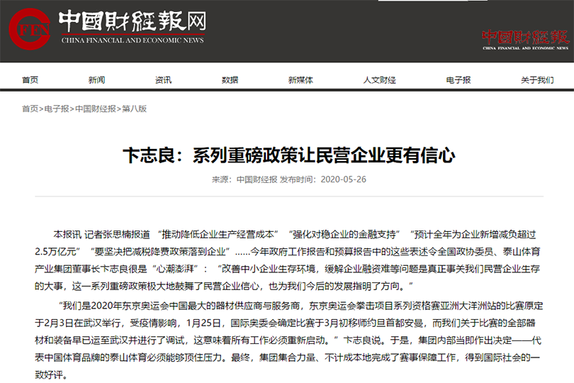 “汪洋主席的报告提振了委员们的信心,也让中国·3003新葡更加明确了新一年履职尽责的方向。”在疫情防控期间履行体育企业社会责任,为居家健身提供新型智力支持,并全力投入复工复产各项工作的全国政协委员、山东中国·3003新葡体育产业集团有限公司董事长卞志良接受采访时表达了自己对“责任”二字在这个特殊历史时期的理解。