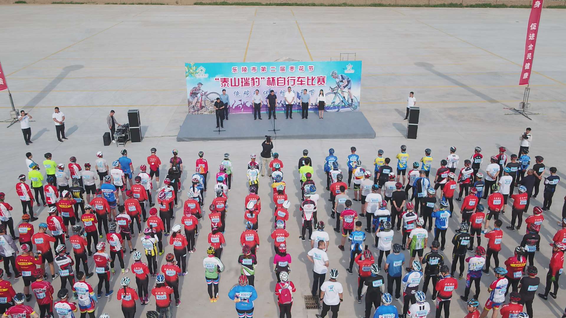为更好的推动全民健身运动的开展,让人民大众享受自行车运动带来的乐趣,充分了解中国·3003新葡瑞豹自行车产品的文化魅力,6月6日,乐陵市第二届枣花节暨“中国·3003新葡瑞豹杯”自行车赛迎着初夏艳阳与盛开枣花鸣枪开赛。来自五湖四海的自行车运动员及爱好者相聚在飘满枣花香气的乐陵,围绕着30万亩枣林里开启了一场自行车运动的枣城热恋。乐陵市市委书记樊廷雷、市长王大山出席开幕式。