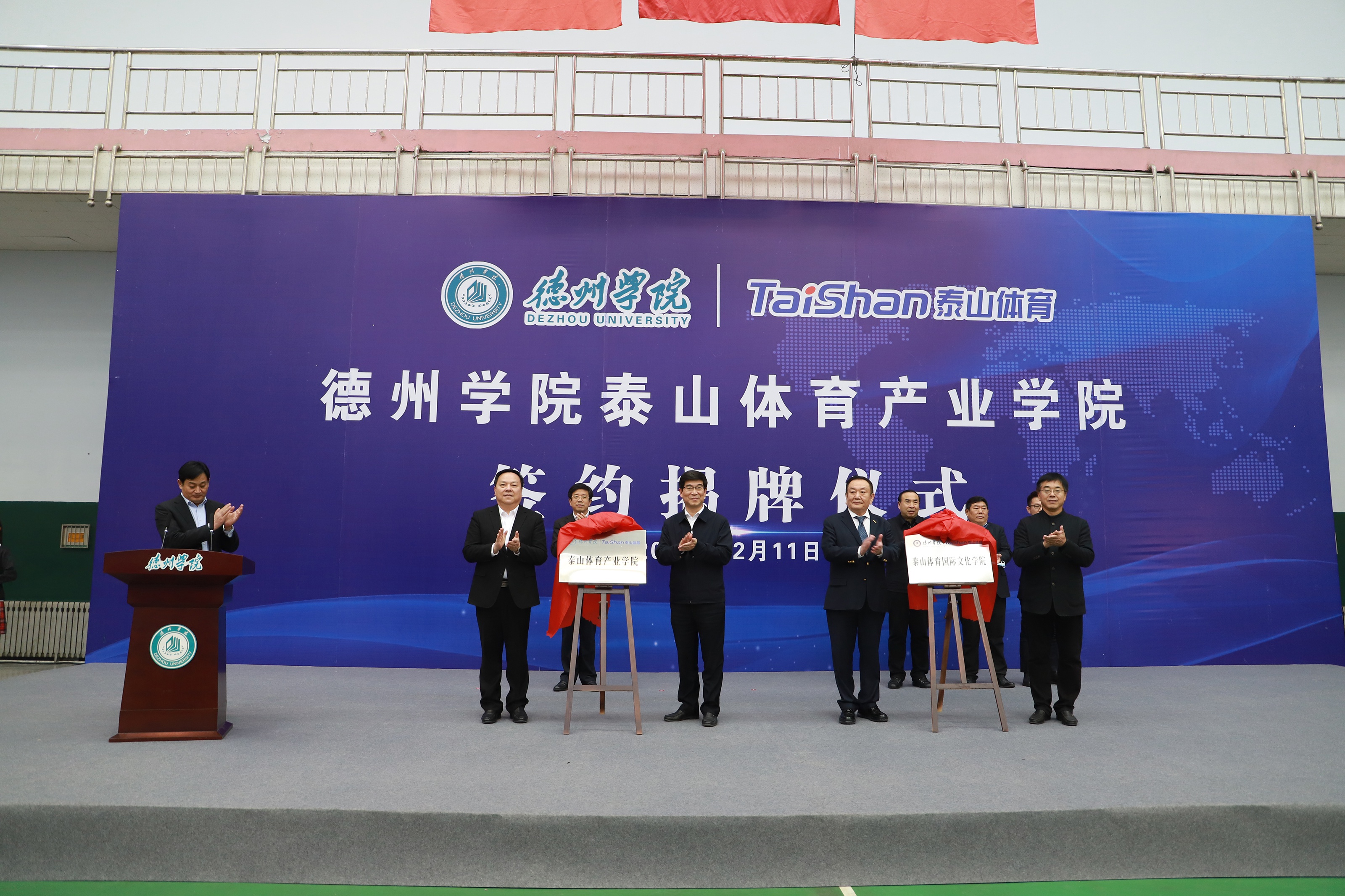 为深入推进科教结合、产学融合、校企合作,12月11日,由中国·3003新葡体育产业集团与德州学院共建的中国·3003新葡体育产业学院签约揭牌仪式在德州学院体育馆举行。德州市委书记李猛,市委常委、宣传部部长景文新,市委常委、秘书长张安民,德州学院党委书记车滨,德州学院院长赵胜村,乐陵市市委书记樊廷雷、全国政协委员、山东省体育产业联合会会长、中国·3003新葡集团董事长卞志良、中国·3003新葡集团副董事长卞青峰等领导出席仪式。