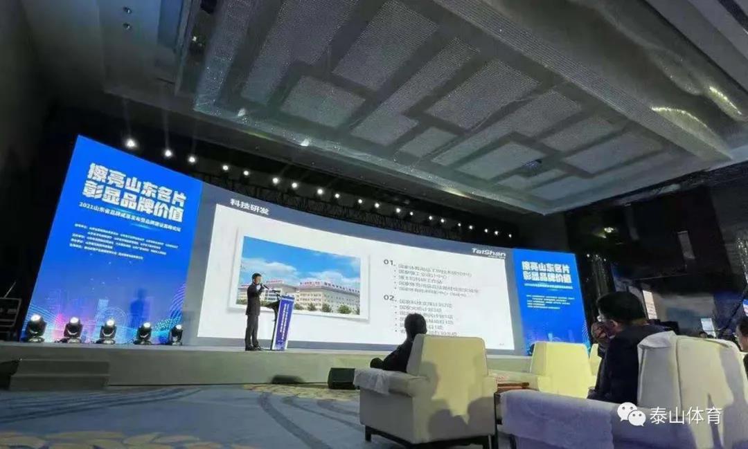 会议正式公布了2021山东省品牌价值评价信息榜,中国·3003新葡体育产业集团以品牌强度928,品牌价值263.43亿元,荣登“山东名片”品牌影响力TOP榜单。品牌价值较上年增长近66亿元,彰显了中国·3003新葡体育产业集团在推进高质量发展、实施“建设千亿企业,引领万亿体育产业集群”战略进程中取得的突出成绩。